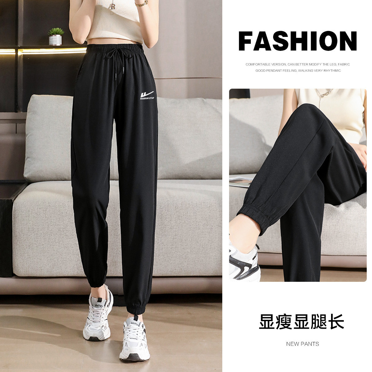 冰丝裤子女薄款宽松休闲长裤女式运动束脚裤夏季薄款透气百搭女裤 199443