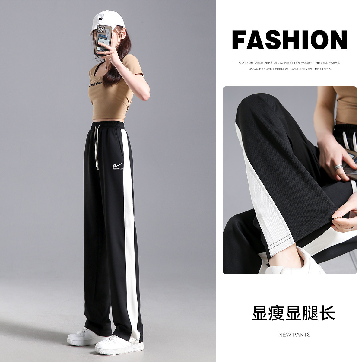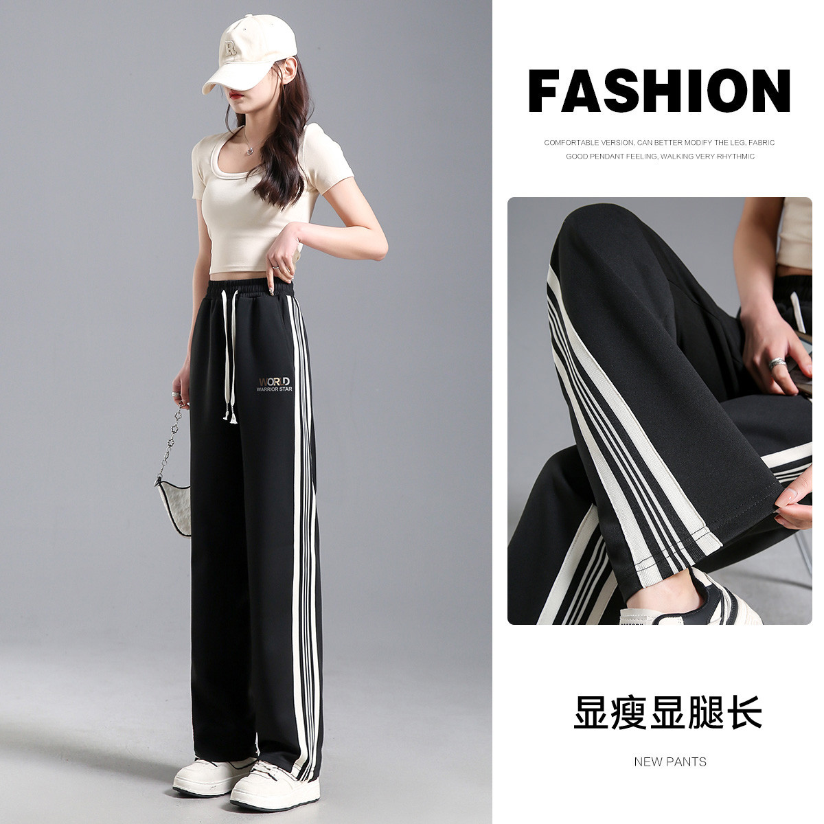 春季休闲运动裤女潮流侧条纹百搭舒适休闲长裤女 898899