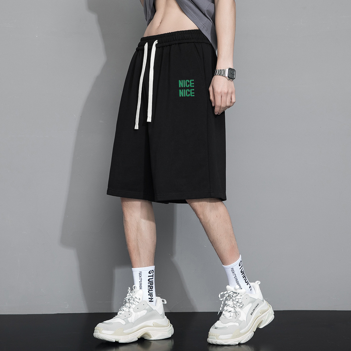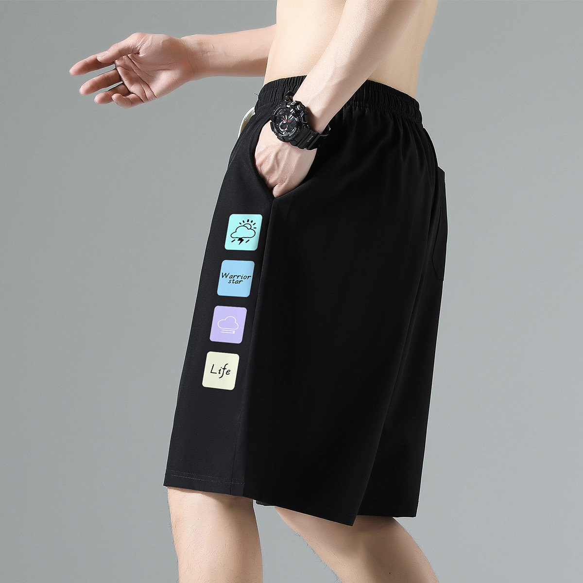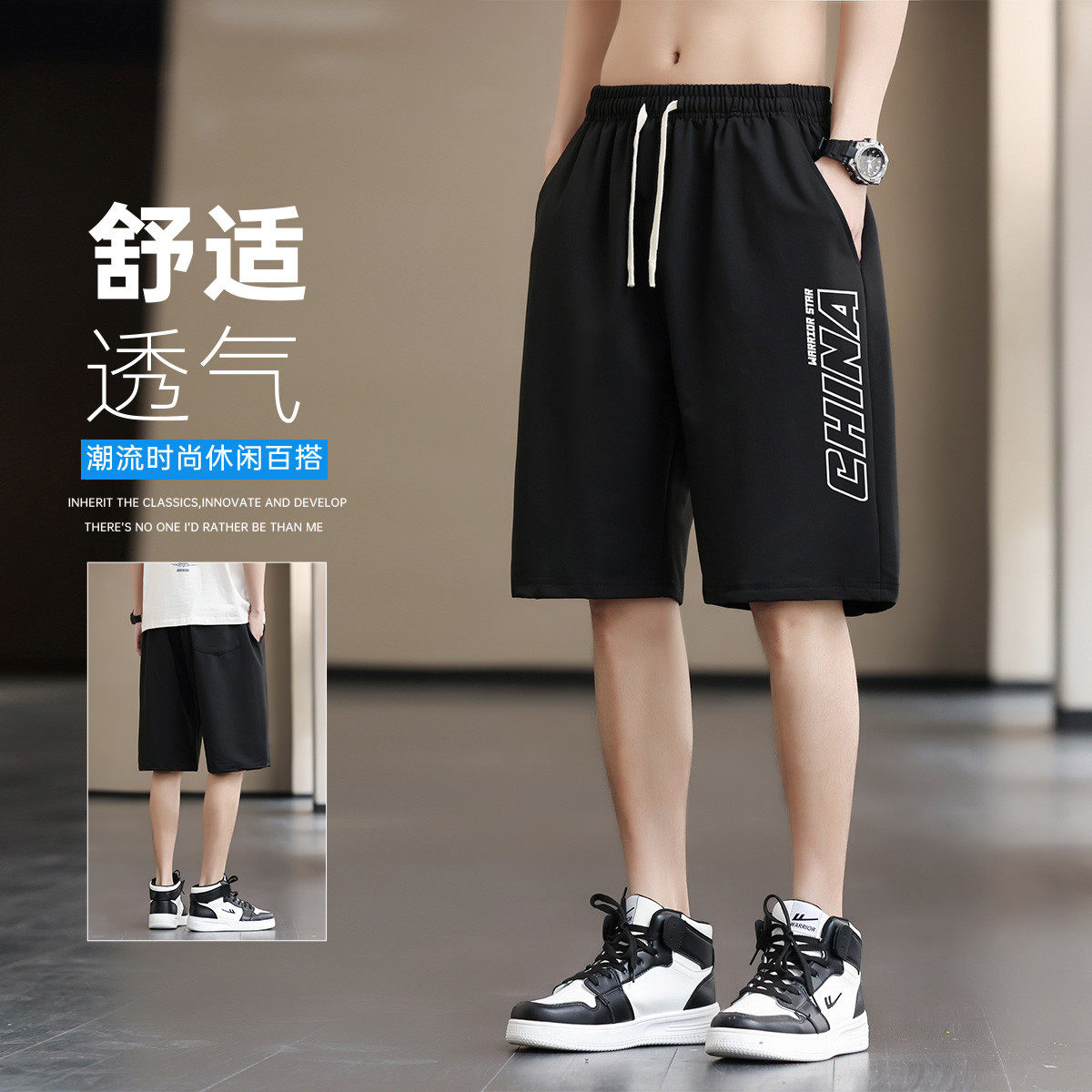 凉感男式休闲裤夏季薄款透气五分裤子简约印花外穿运动短裤 443923