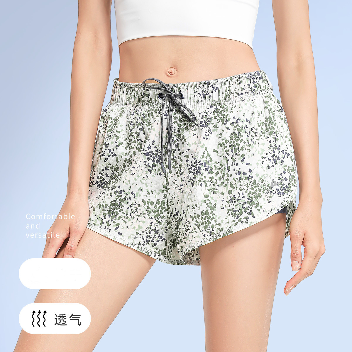 沙滩夏季假两件运动短裤女薄款宽松瑜伽健身裤防走光训练跑步短裤 041043