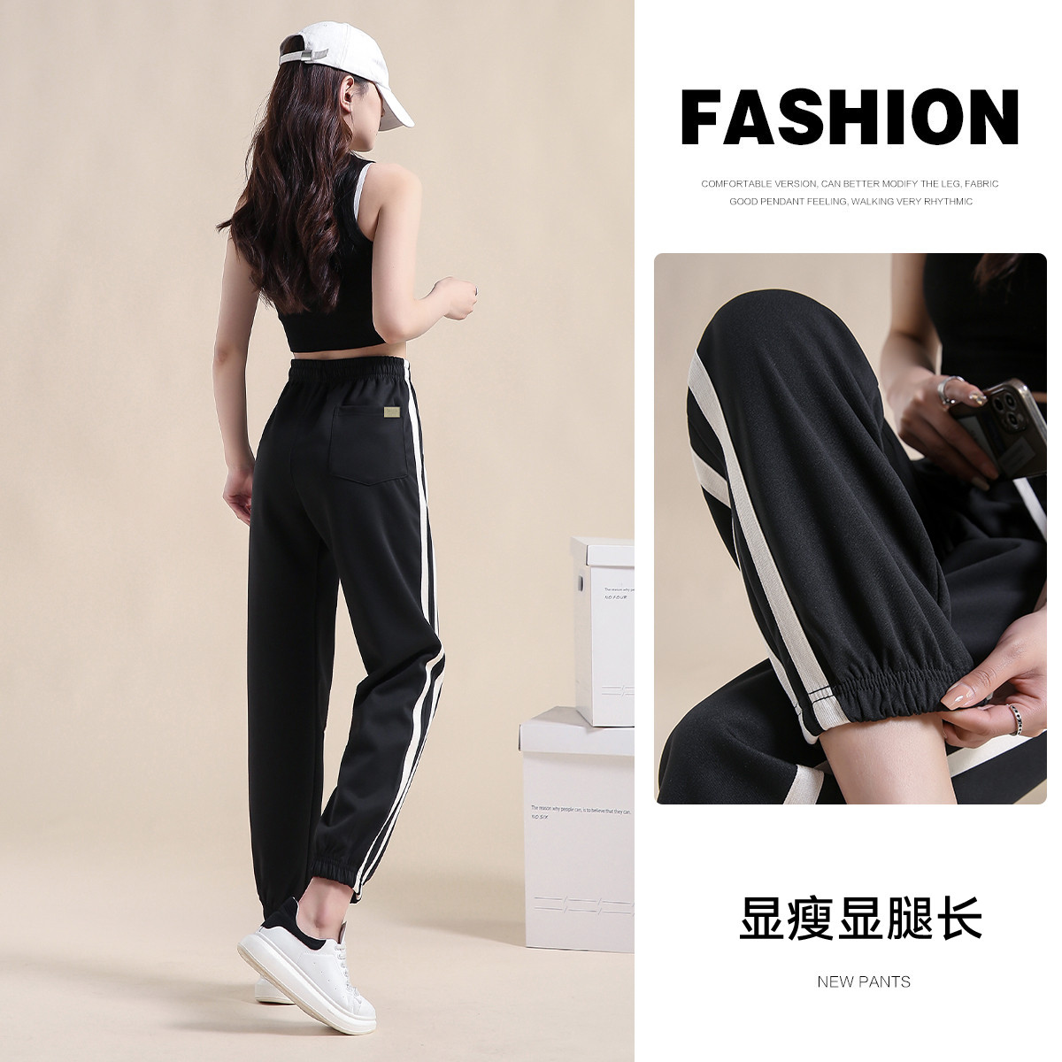 女士哈伦裤春季侧边条纹运动裤束脚裤小个子休闲运动裤 046355