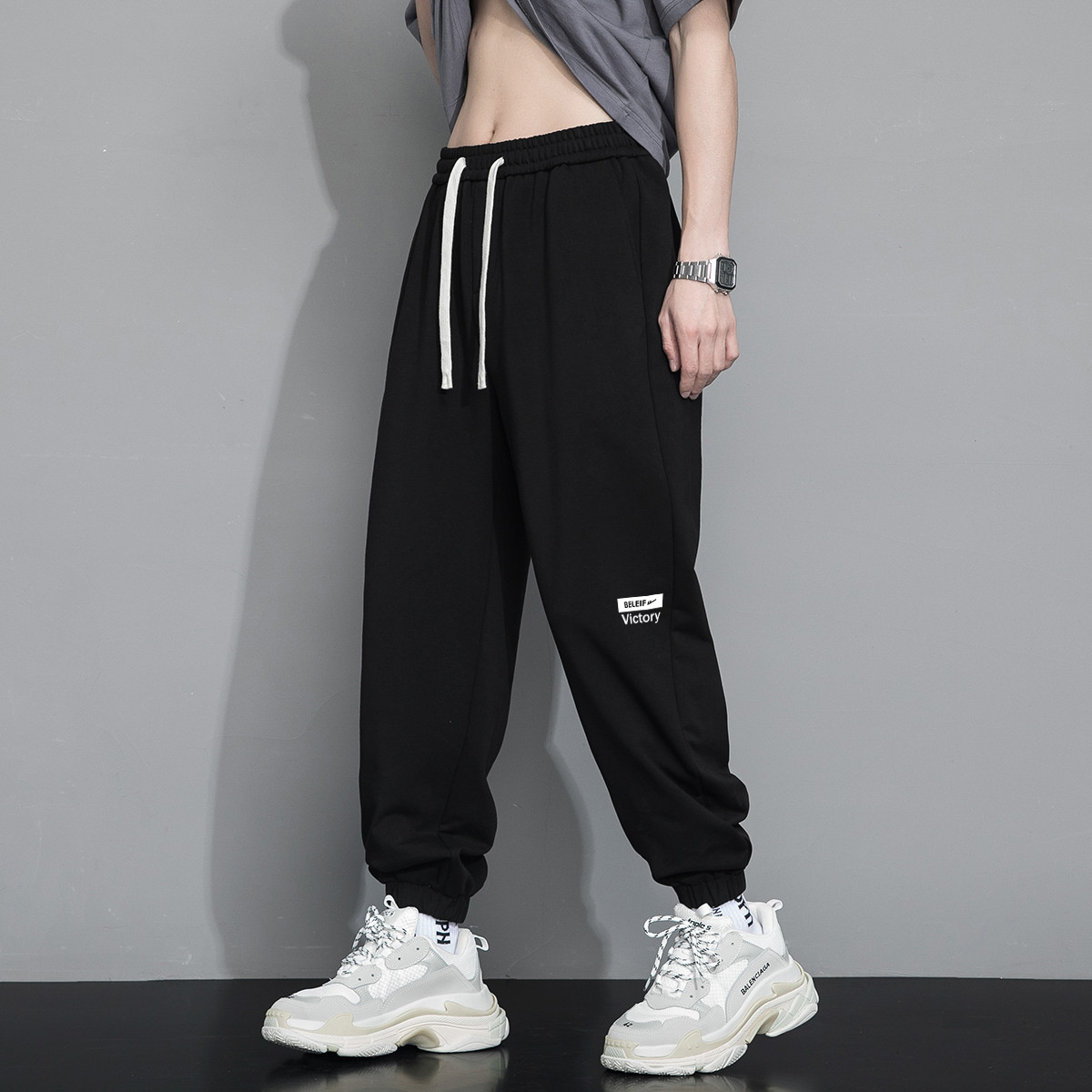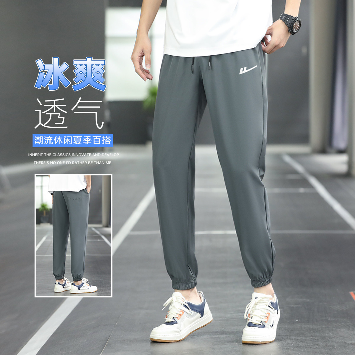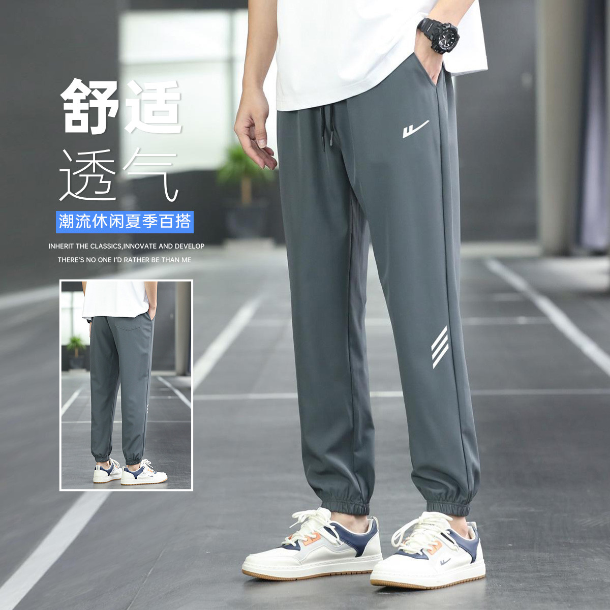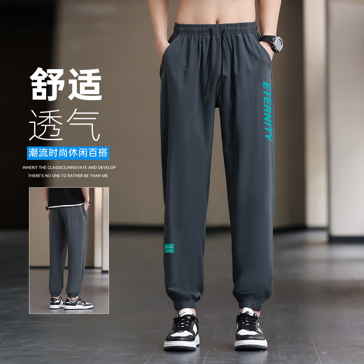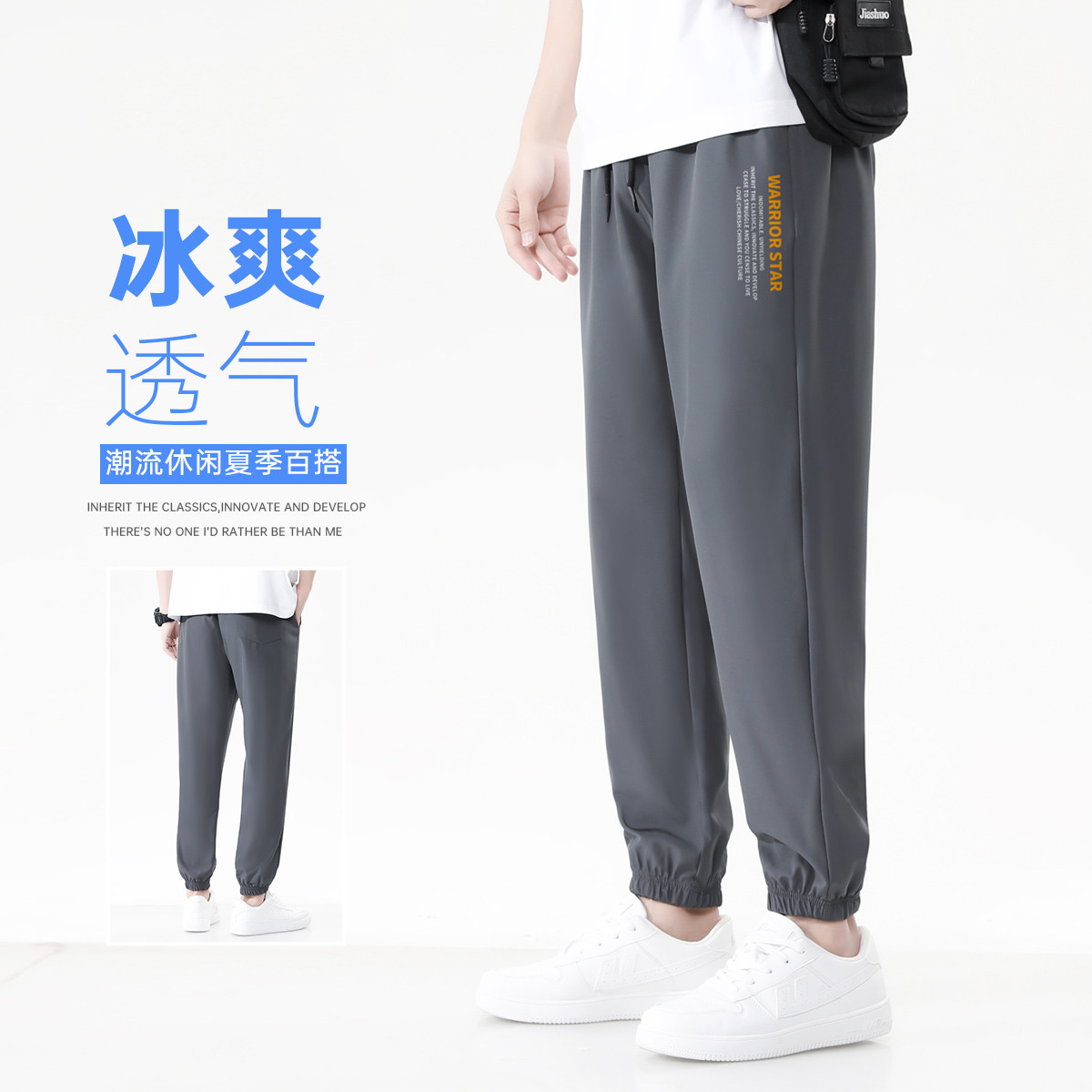 【冰丝质感】夏季运动休闲长裤凉感薄款透气百搭学生系绳束脚裤男 087315