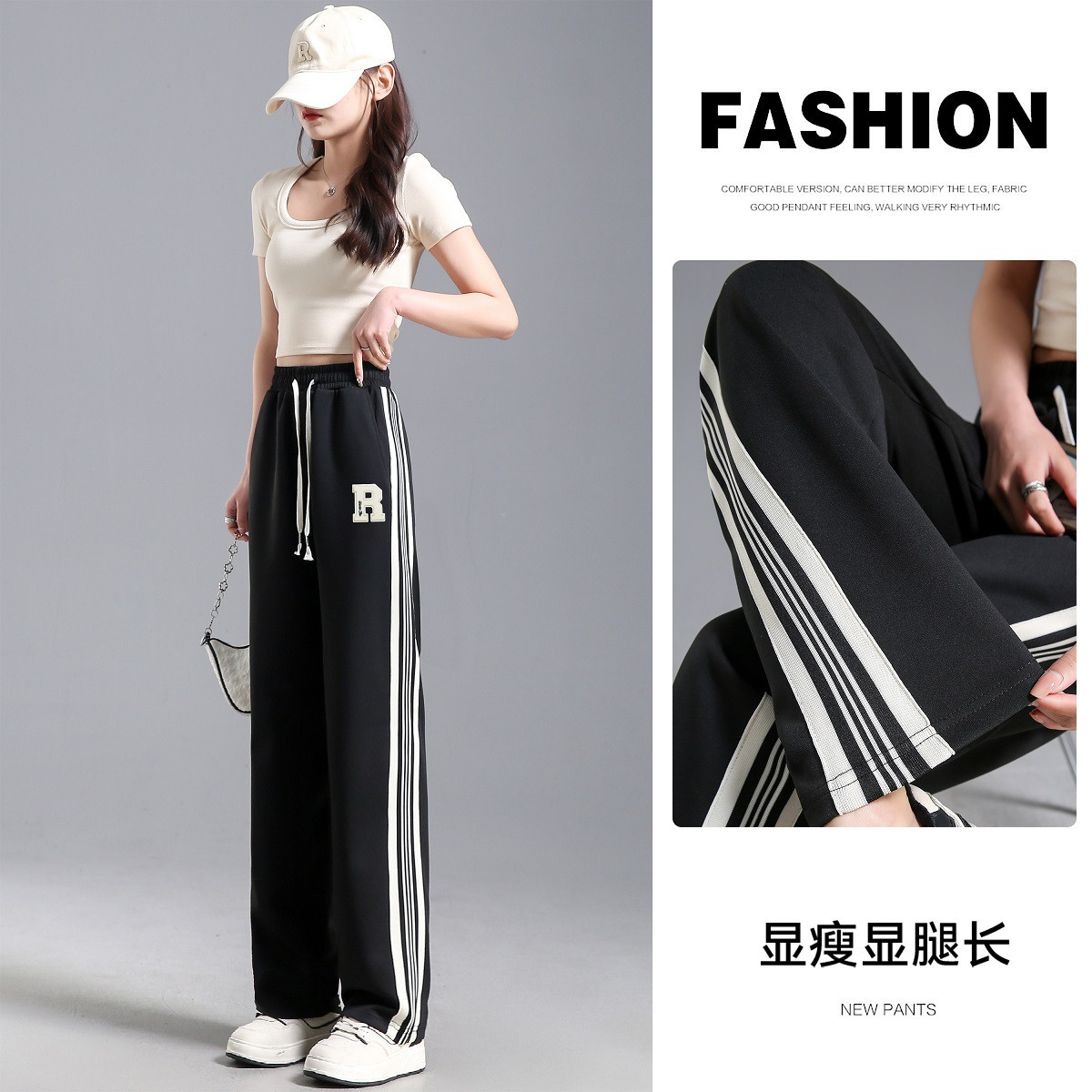 【潮流好物】阔腿运动裤女春季潮流垂感直筒拖地休闲拼色裤子 984851