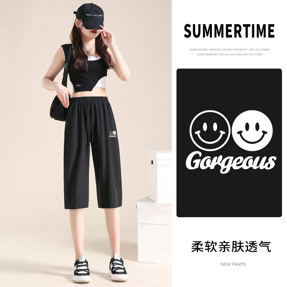 【冰丝面料】夏季薄款女士七分裤简约宽松运动女装休闲裤子 835859