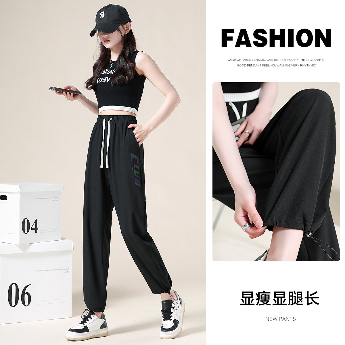 【夏季冰丝】简约百搭女式薄款运动休闲裤透气吸汗户外运动跑步 018579