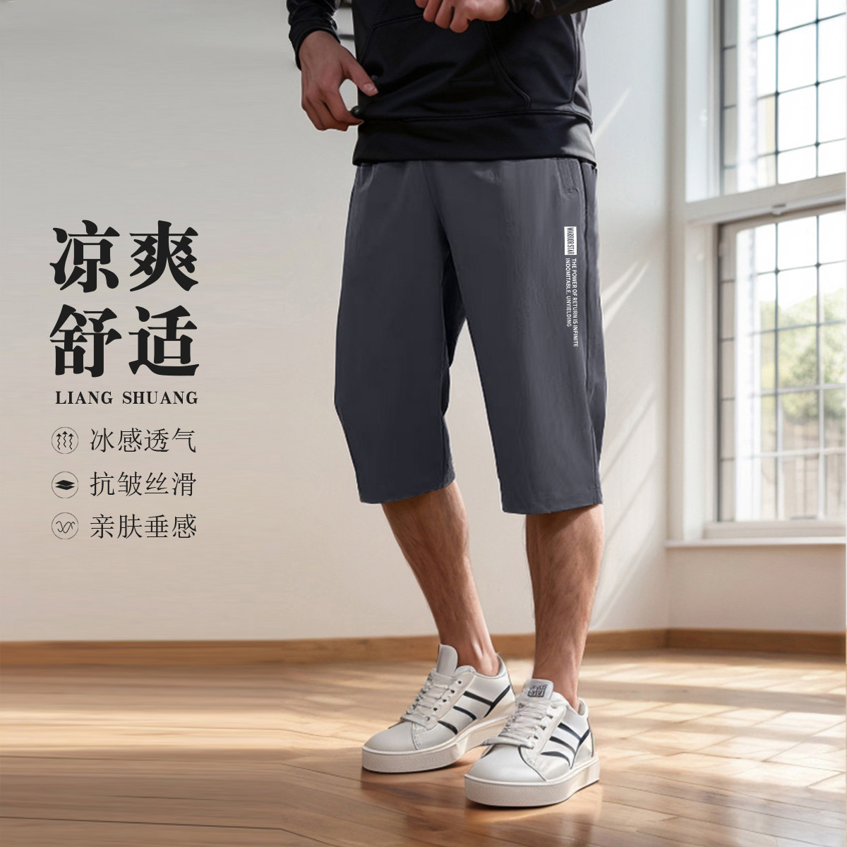 【口碑爆款】夏季冰丝运动七分裤韩版学生薄款舒适百搭男印花裤子 592467