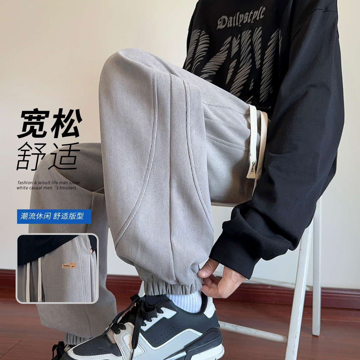 美式灯芯绒运动裤子男士直筒卫裤潮牌阔腿男裤休闲长裤 539091