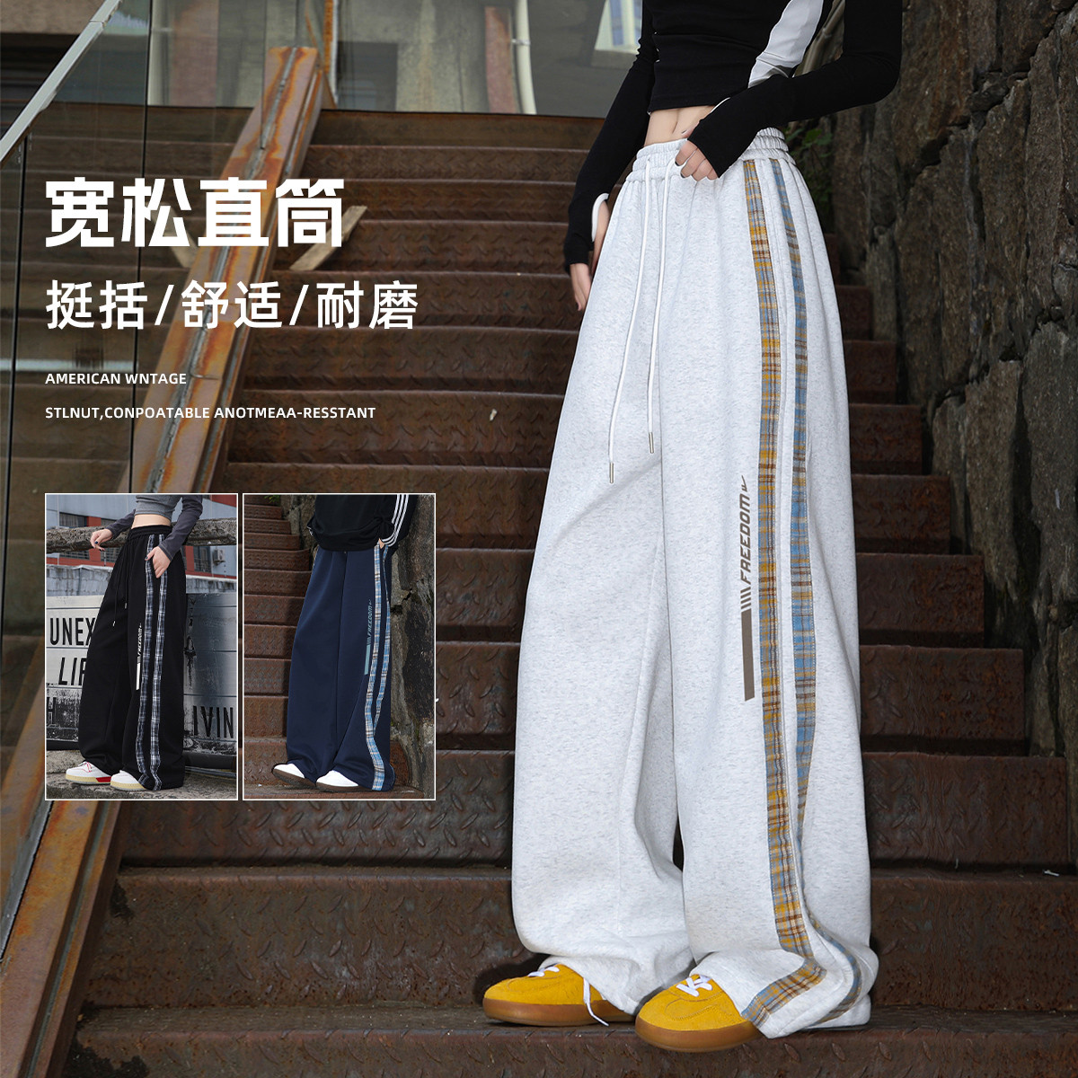 【重磅棉】潮牌运动卫裤男女春秋季美式慵懒阔腿裤子垂感休闲裤女 565139
