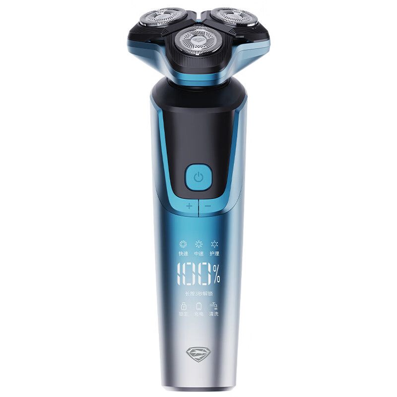 超人(SID)电动剃须刀三刀头智能电量显示大功率全身水洗 RS303