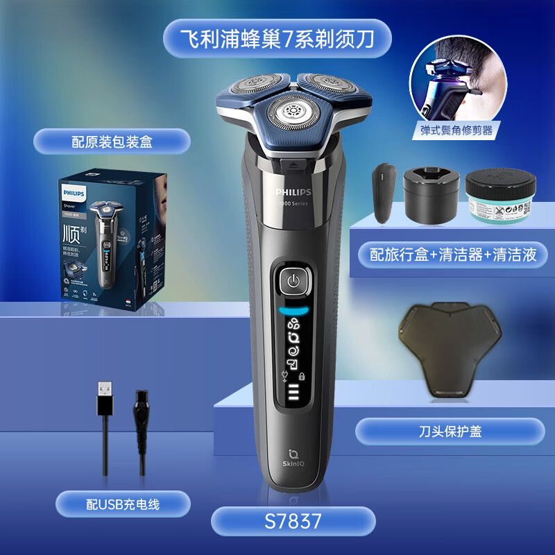 飞利浦(PHILIPS)剃须刀S7837 男士电动刮胡刀充电蜂巢7系胡须刀
