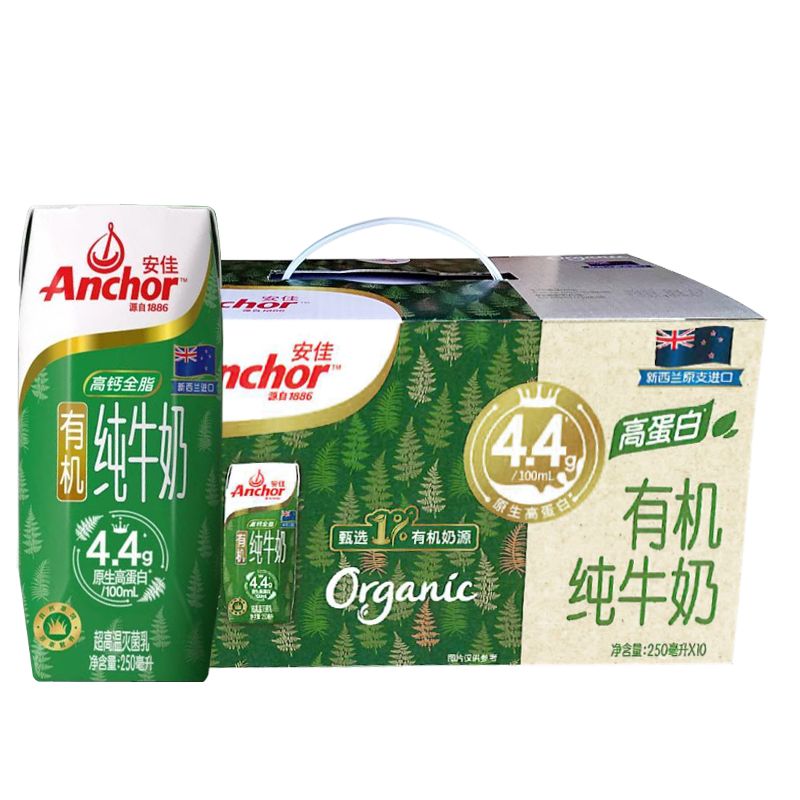 新西兰进口安佳卓冉有机纯牛奶250ml*10盒