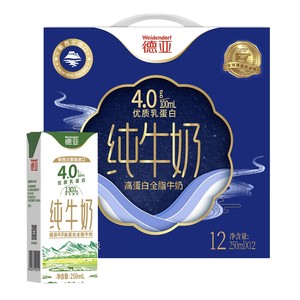 Weidendorf/德亚高蛋白全脂纯牛奶整箱250ml*12盒