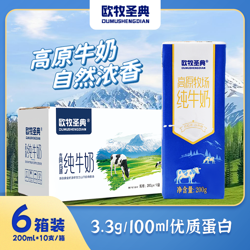欧牧圣典高原纯牛奶200m1*10盒*6箱