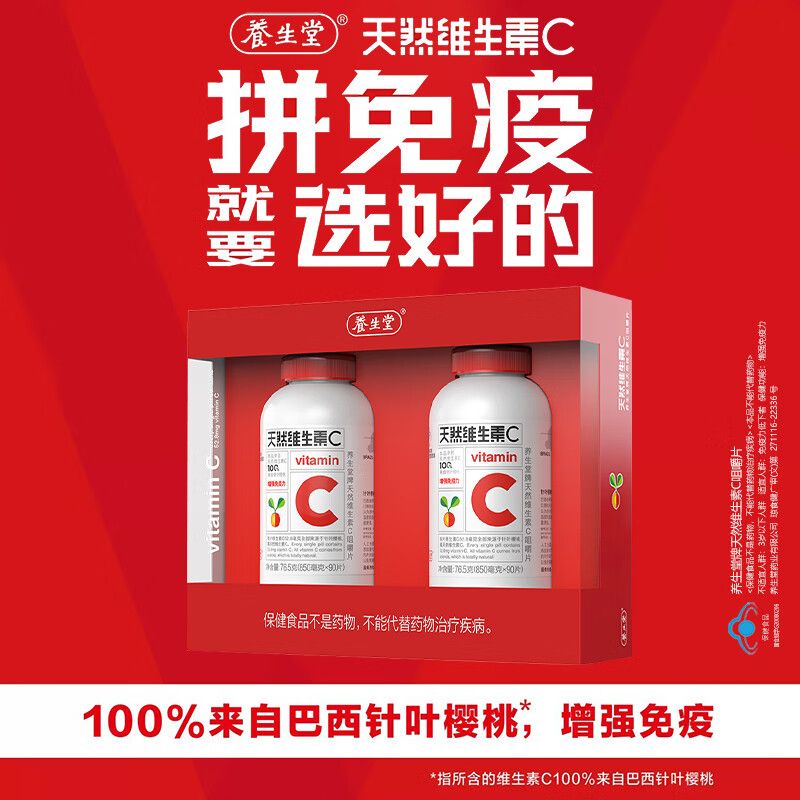 养生堂 天然维生素c咀嚼片 90粒+90粒 vc增强