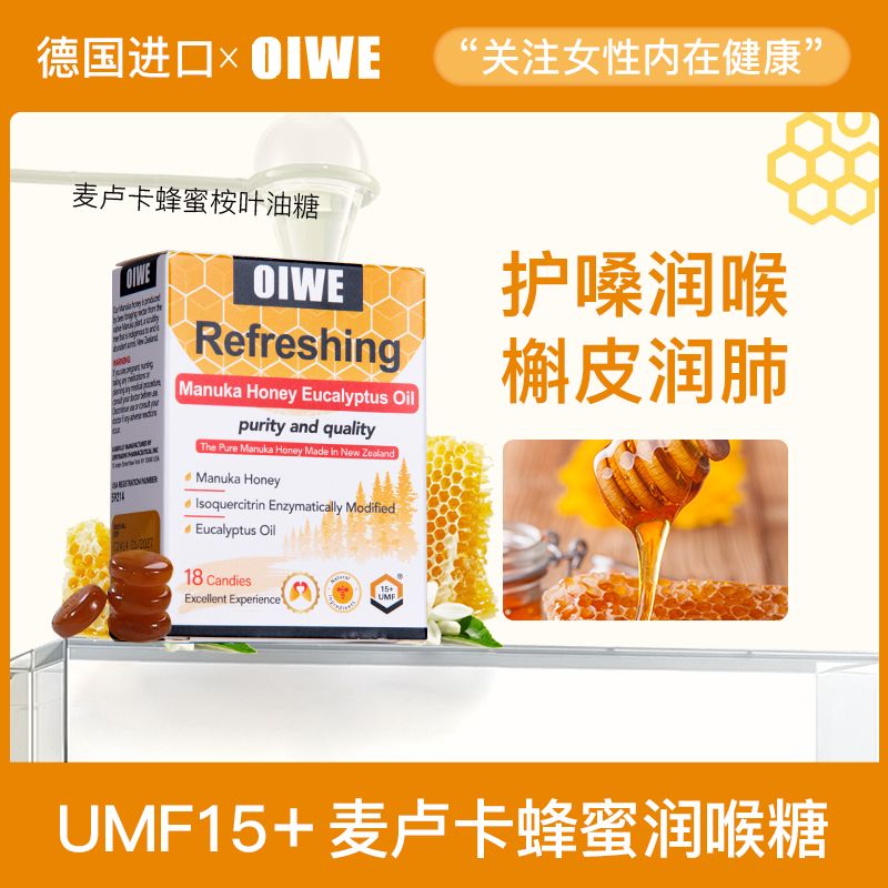 OIWE 麦卢卡蜂蜜桉叶油润喉糖 18颗