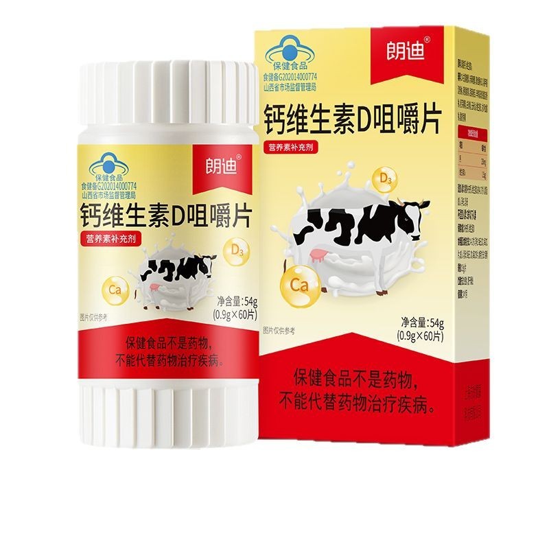 朗迪钙维生素D咀嚼片60片中老年成人孕妇补钙碳酸钙D3片儿童钙片