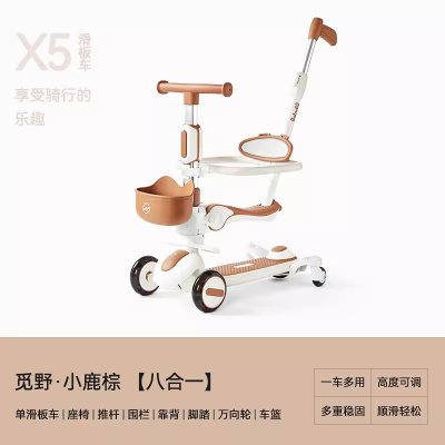 BabyGo 儿童滑板车 觅野X5八合一款 小鹿棕