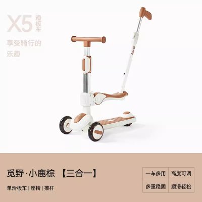 BabyGo 儿童滑板车 觅野X5三合一款 小鹿棕