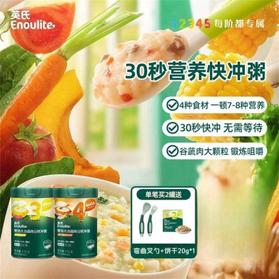 【买赠】英氏(Enoulite)谷蔬肉豆快冲粥(胡萝卜虾玉米菠菜)175g/罐*2罐【赠弯曲叉勺+饼干20g*1】