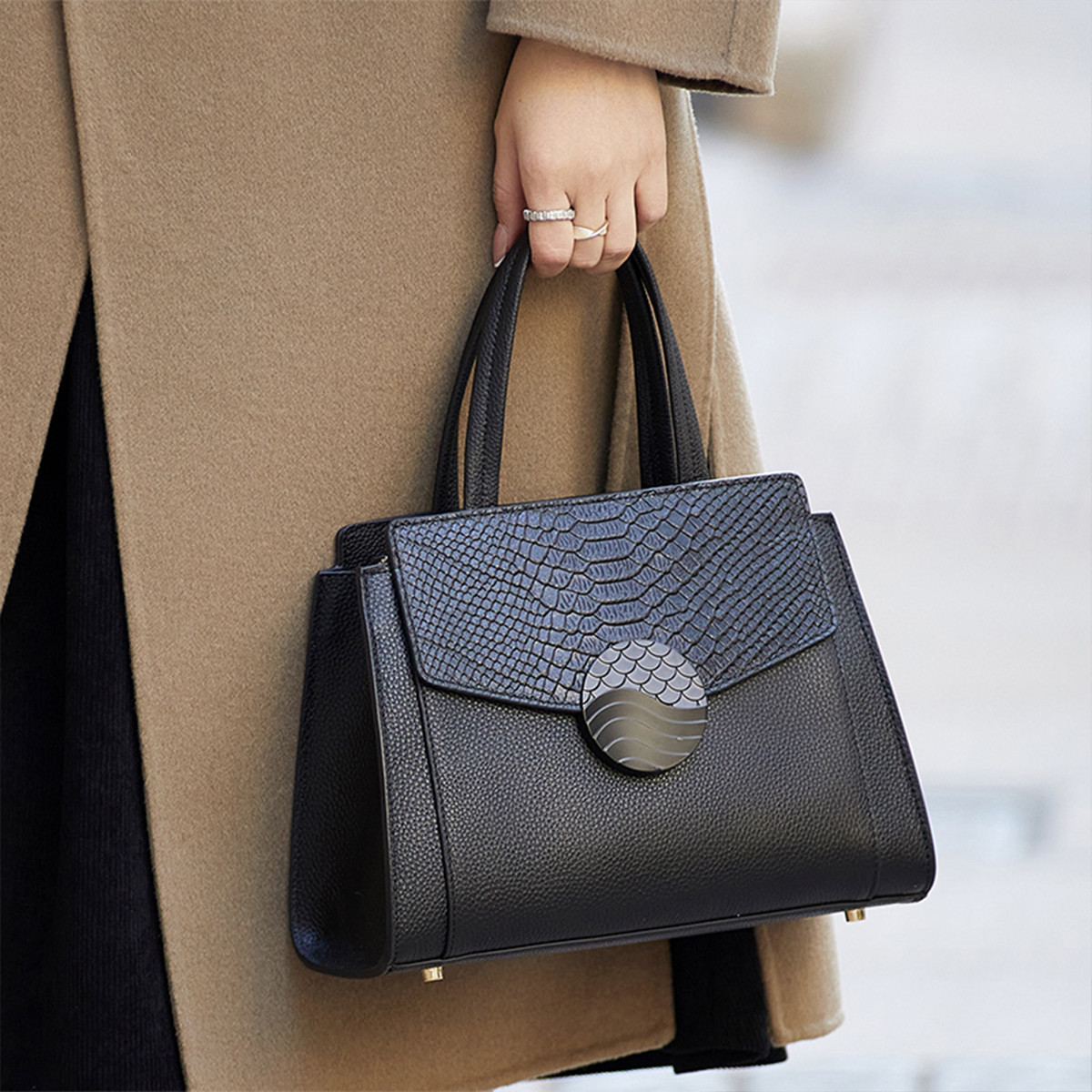 纳兰杜2025新款拼色手提包时尚设计感真皮单肩包百搭通勤高级质感斜挎包