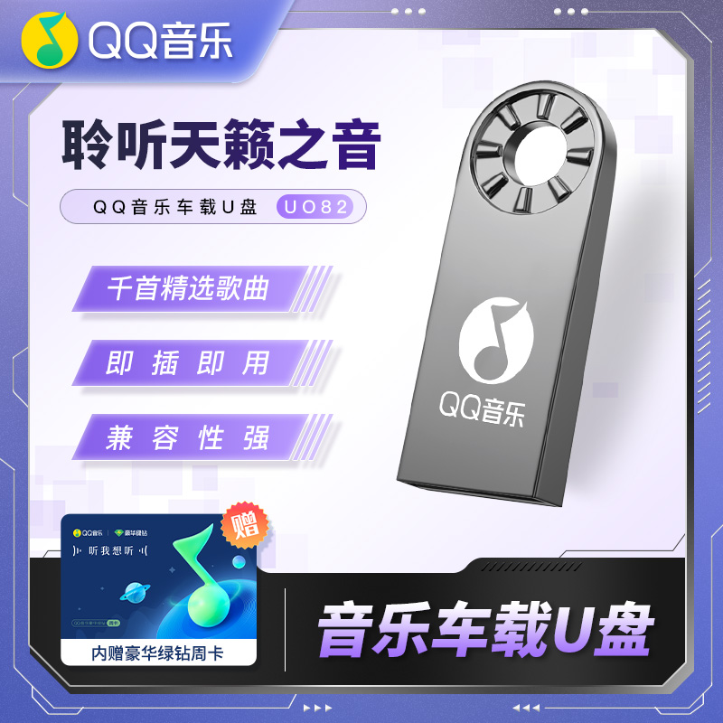 QQ音乐车载U盘正版授权32G高音质DJ流行经典老歌港台UO82-银