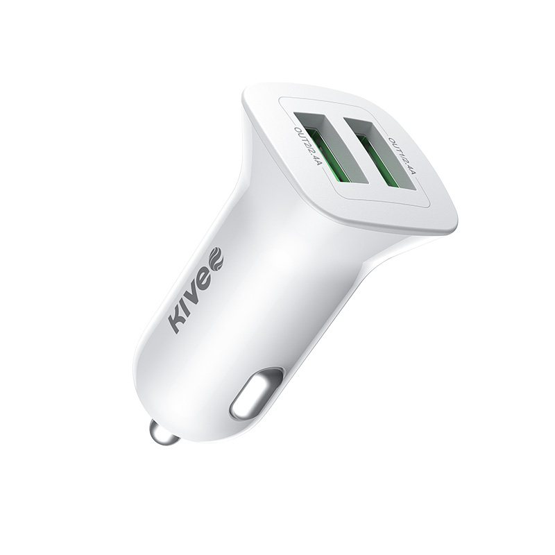 KIVEE车载充电器一拖二多功能通用USB车充汽车点烟器插头2.4A 双usb口 白色