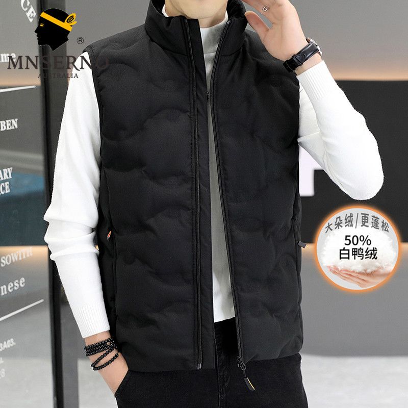 曼西尔奴男士纯色加厚保暖白鸭绒宽松休闲百搭立领坎肩无袖羽绒马甲128263TM