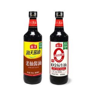 海天老抽酱油750ml+海天0金标生抽750ml