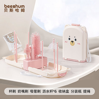 贝斯哈姆(beeshum)便携奶瓶硅胶清洁刷工具套装 粉色