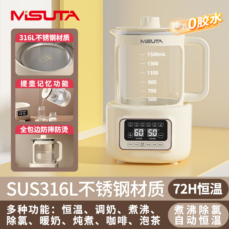 【全国包邮】米苏塔智能恒温调奶器烧水壶恒温壶暖奶器泡奶器养生壶热水壶1.5L大容量