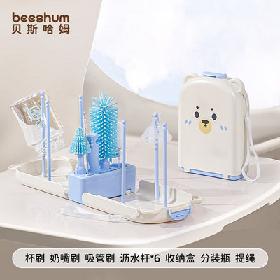 贝斯哈姆(beeshum)便携奶瓶硅胶清洁刷工具套装 蓝色