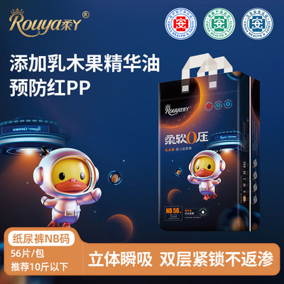 柔丫 柔软0压纸尿裤 NB码56片*2包(推荐10斤以下)