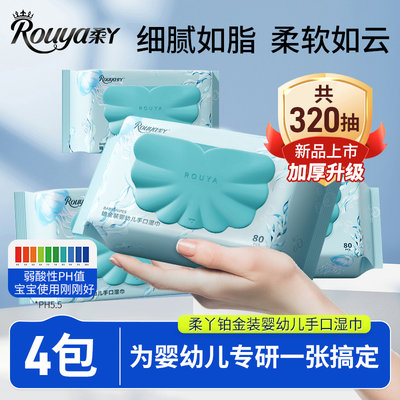 柔丫 婴儿手口湿巾铂金装 80抽*4包