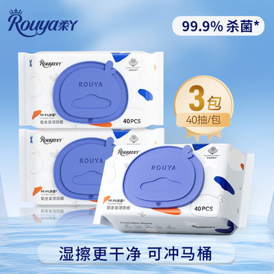 柔丫 铂金装湿厕纸 40抽/包*3包
