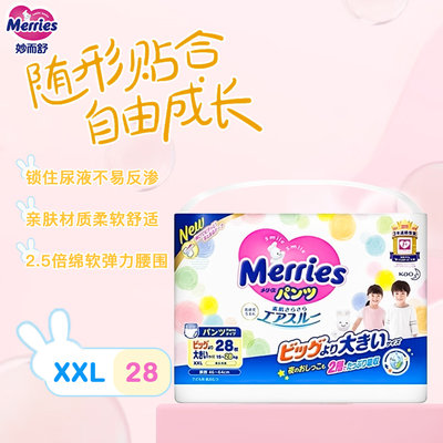 日本 花王(Merries)拉拉裤XXL28片(15-28kg) 白标 增量装