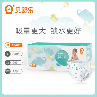 贝舒乐(Besuper)真芯吸纸尿裤男女宝宝 M(6-11kg)104片/箱(含4小包)