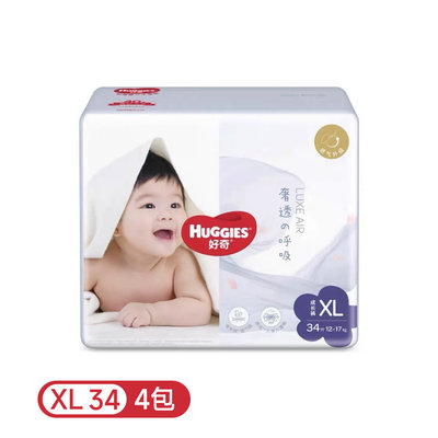 美国 好奇(HUGGIES)奢透呼吸纸尿裤 XL34*4包(12-17kg)新老包装随机发