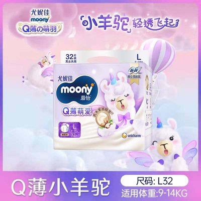 日本 尤妮佳(Moony)Q薄萌爱小羊驼纸尿裤 L32(9-14kg)