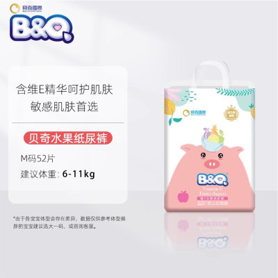 贝奇(B&Q)优之选水果维E护臀系列纸尿裤 M52(6-11kg)