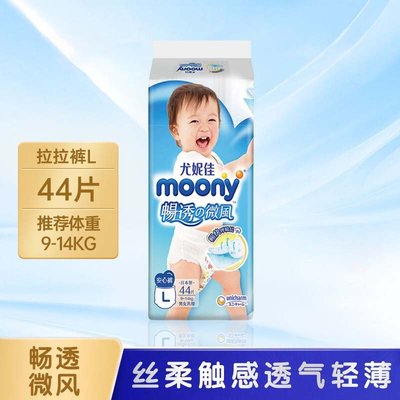 日本 尤妮佳(moony)畅透拉拉裤 L44 (彩标)(9-14kg)