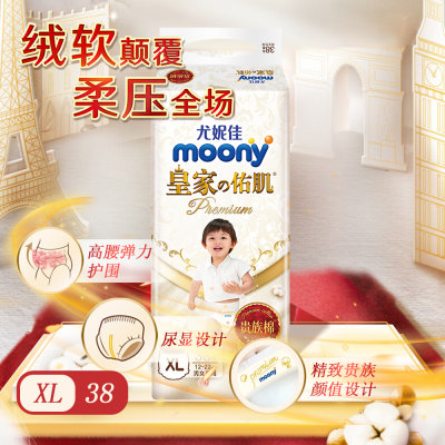 日本 尤妮佳(Moony)皇家佑肌贵族棉拉拉裤 XL38(彩标)(12-22kg)新旧包装随机发