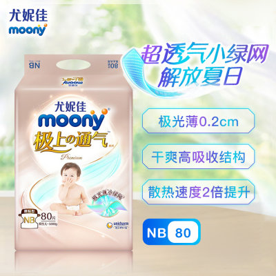 日本 尤妮佳(moony)极上通气系列纸尿裤 NB80(彩标)(<=5kg)