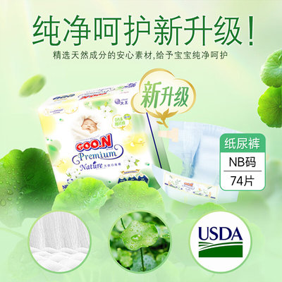 日本 大王(GOO.N)天使自然之恩纸尿裤 NB74(≤5kg)升级版