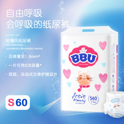 德国 BBU 自由呼吸轻薄款纸尿裤 S60(4-8kg)