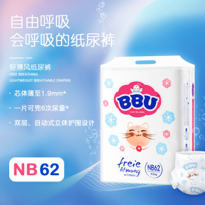 德国 BBU 自由呼吸轻薄款纸尿裤 NB62(<=5kg)