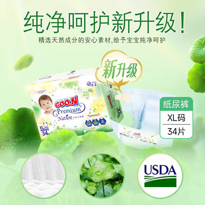 日本 大王(GOO.N)天使自然之恩纸尿裤 XL34(12-17kg)升级版
