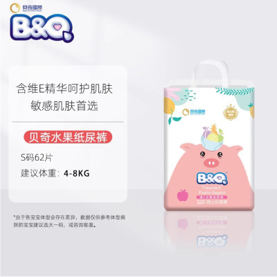 贝奇(B&Q)优之选水果维E护臀系列纸尿裤 S62(4-8kg)