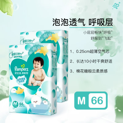 美国 帮宝适(Pampers)清新帮纸尿裤 M66片*2包(6-11kg)新旧包装随机发