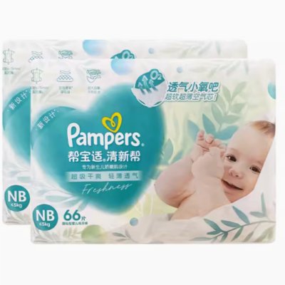 美国 帮宝适(Pampers)清新帮泡泡纸尿裤 NB66(<=5kg)新旧包装随机发