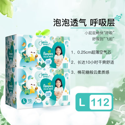 美国 帮宝适(Pampers)清新帮纸尿裤L112片(9-14kg)箱装 新旧包装随机发